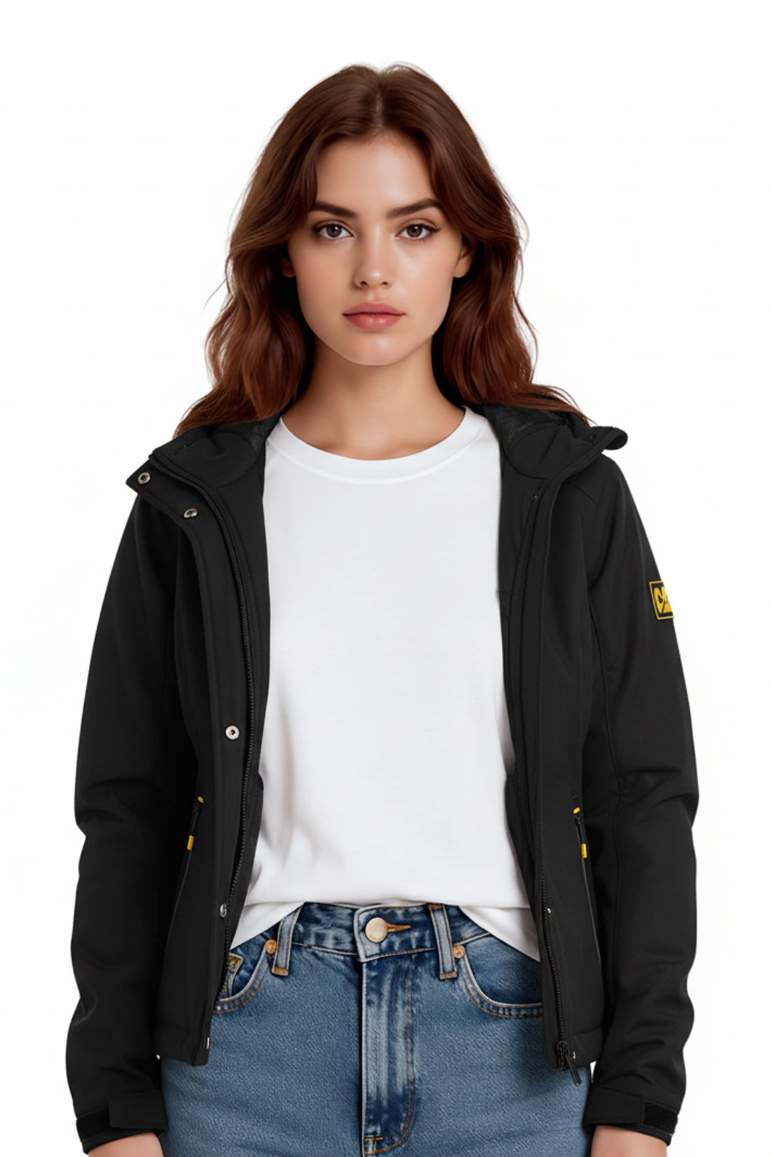Piumino Donna corto Ciesse Ysabel SH colore nero. Chiusura con zip frontale, cappuccio imbottito e logo applicato sulla manica.