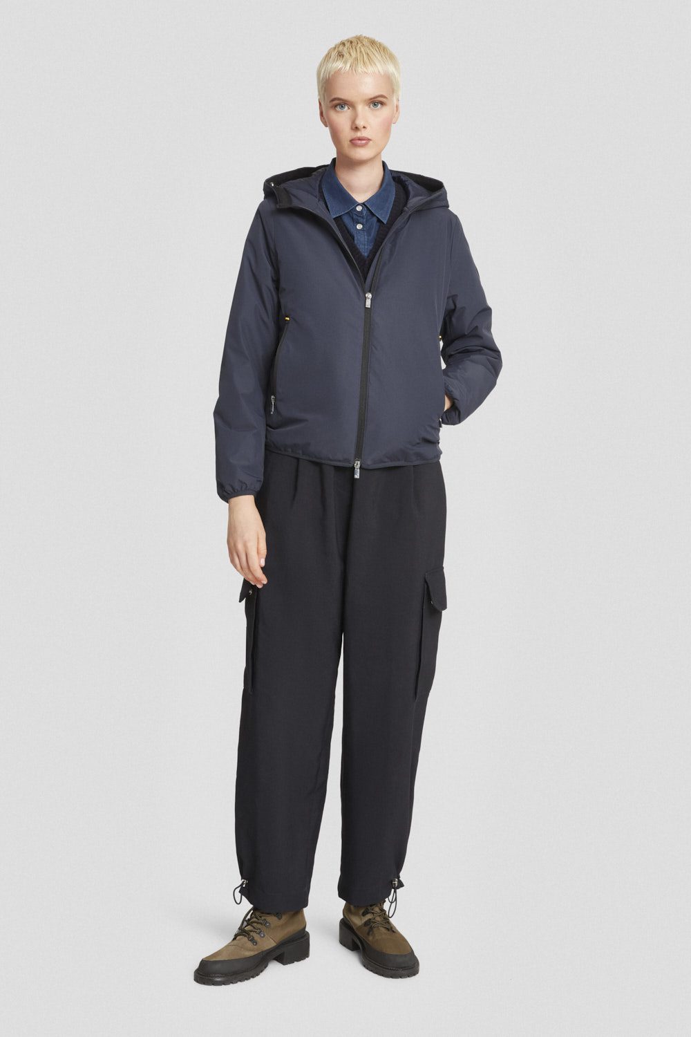 – Cappuccio regolabile con cordino elastico e stopper